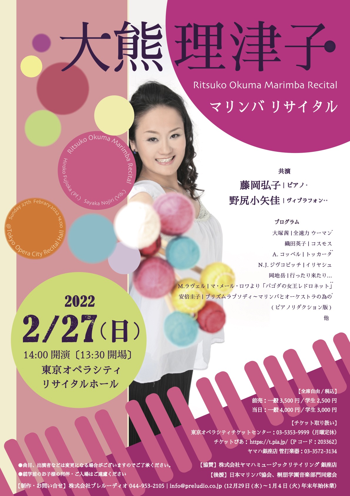 共演:藤岡弘子(Pf), 野尻小矢佳(Vib.)