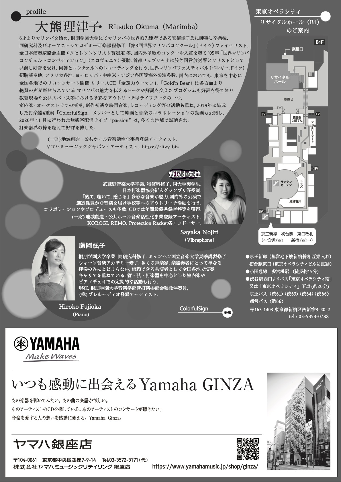 共演:藤岡弘子(Pf) / 野尻小矢佳(Vib.)
